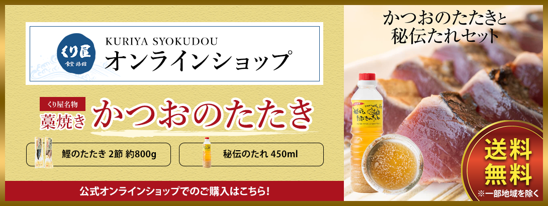 くり屋秘伝の特製ダレを使ったカツオのたたきは絶品です。